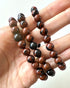 Il bracciale in Ossidiana Mogano si distingue per le sue sfumature rossastre che donano calore e forza alla classica ossidiana nera. Questa pietra è nota per le sue proprietà protettive e di radicamento, aiutando a dissipare energie negative e a stimolare il coraggio e la determinazione. Supporta il superamento di blocchi emotivi e fisici, favorendo trasformazione e crescita personale.