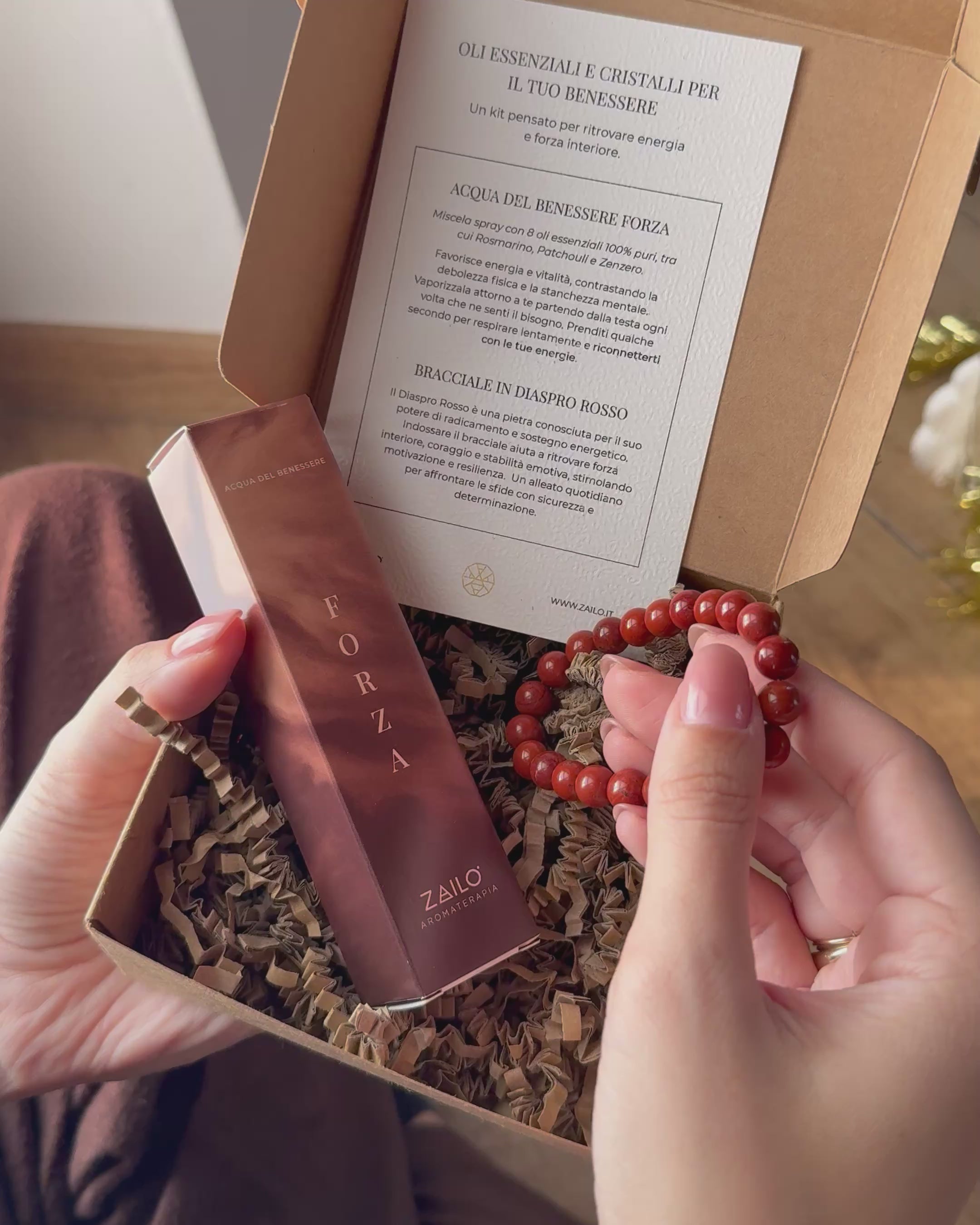 • Acqua del Benessere FORZA e bracciale in DIASPRO ROSSO -  un kit regalo pensato per chi ha bisogno di energia e forza interiore